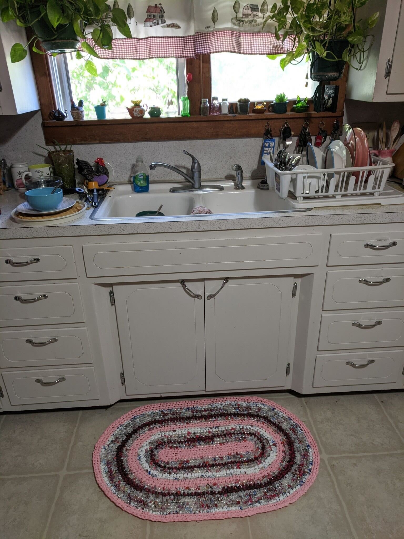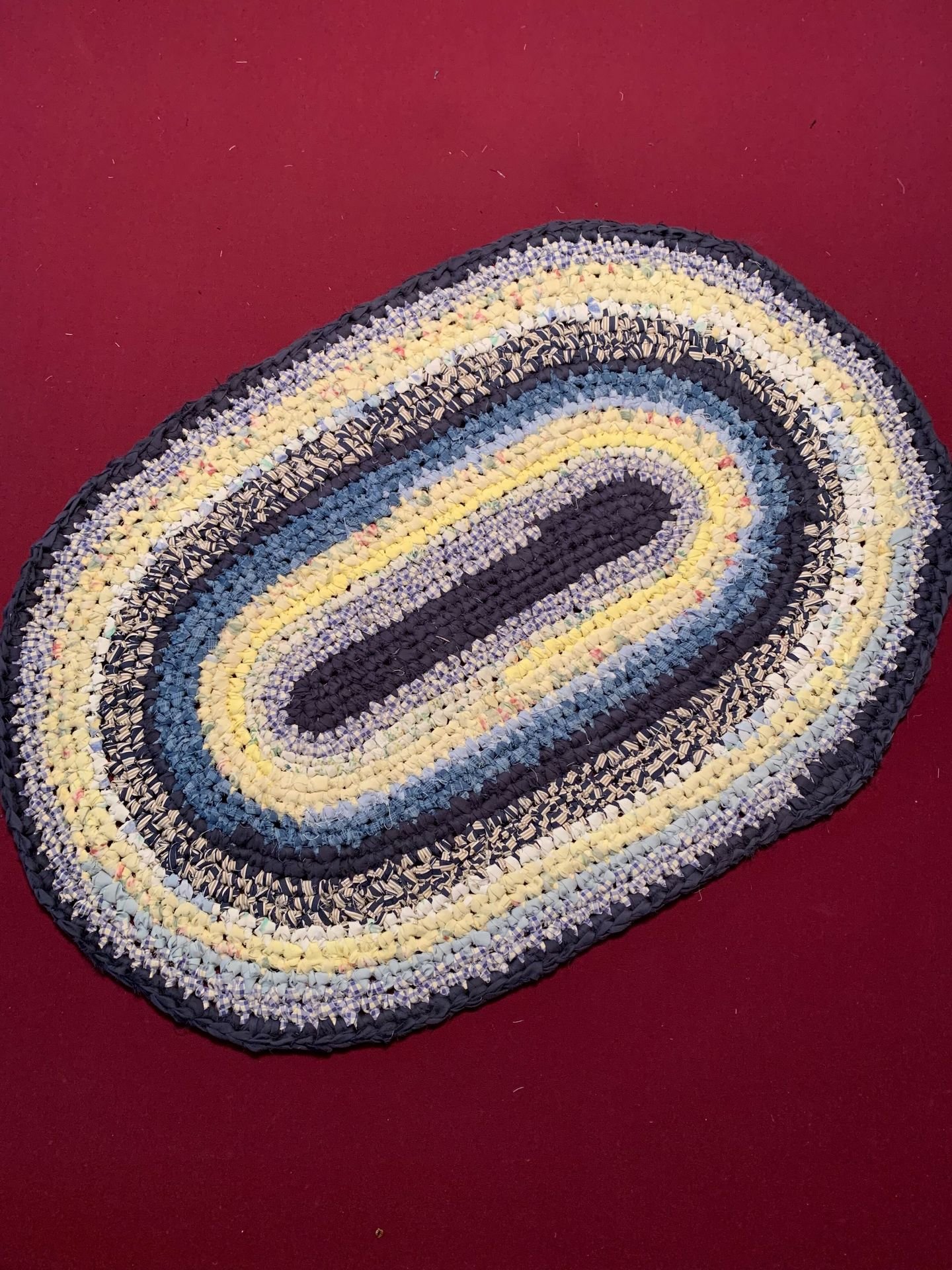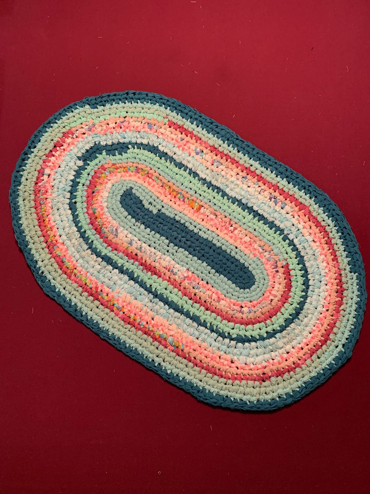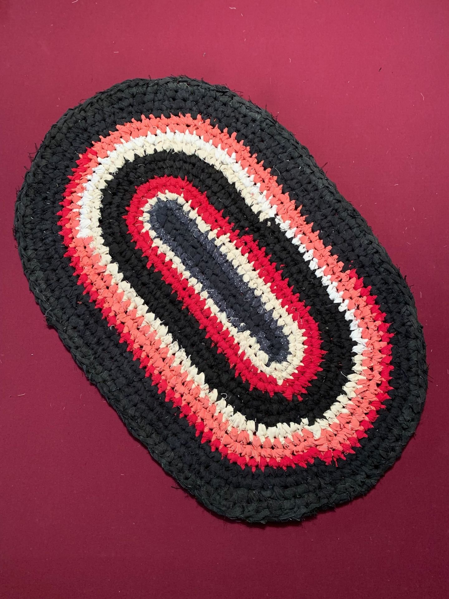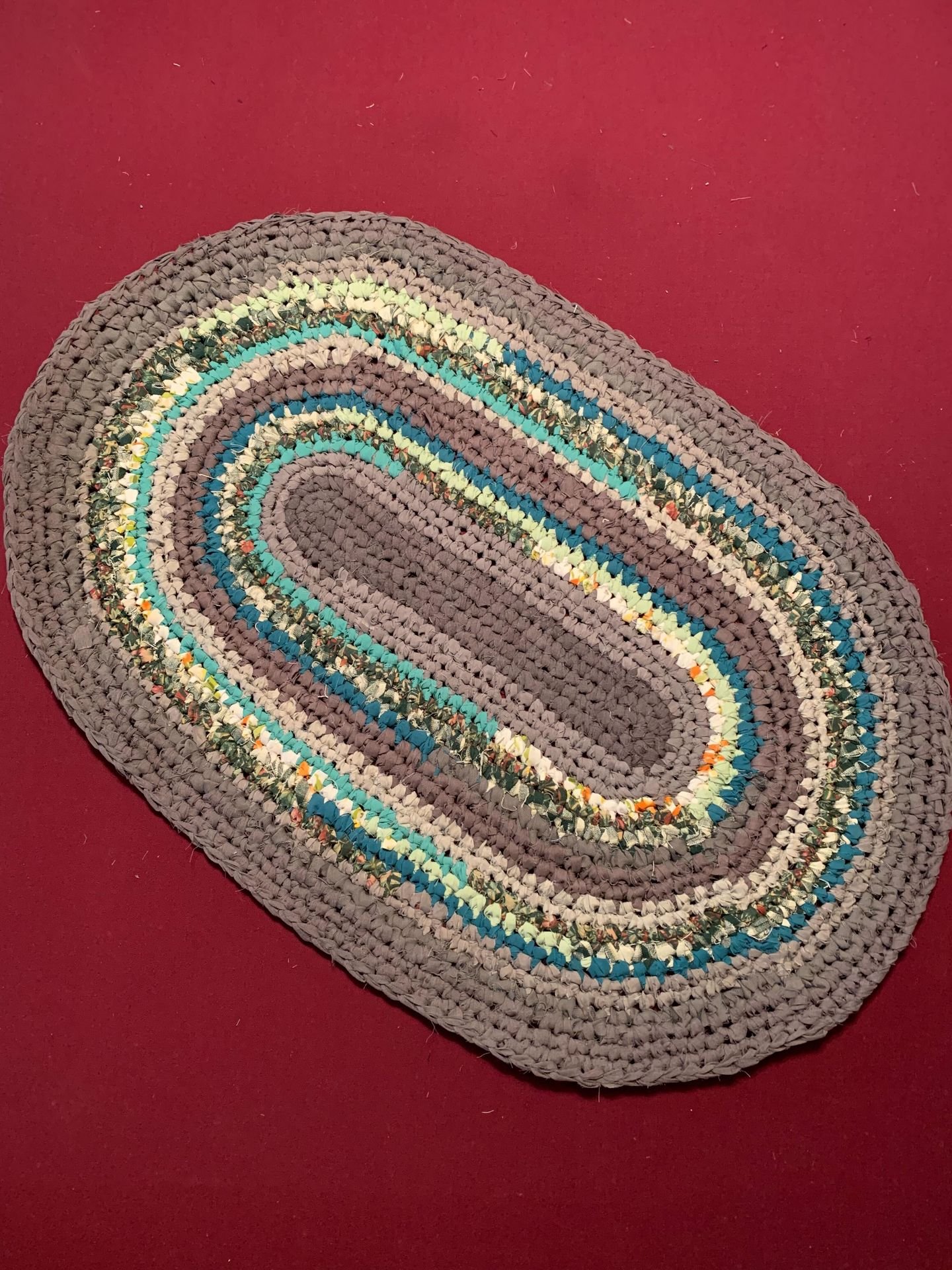 Did you ever think you could recycle plastic bread sacks, vegetable bags, and tablecloths? These 2'x3' colorful plastic rugs are a great fit for bathrooms and porches.